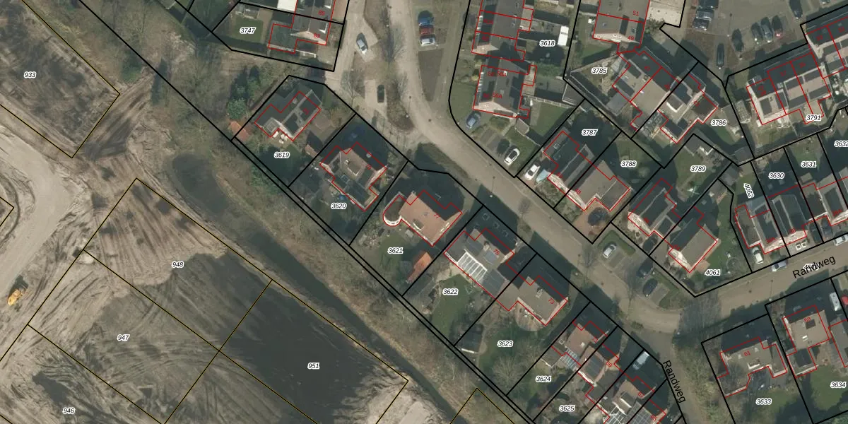 Randweg 77 is gelegen op kadastraal perceel OLO00B3621. Deze kadastrale aanduiding is uniek en wordt gebruikt door het Kadaster om eigendomsrechten en andere zakelijke rechten vast te leggen. Het perceel maakt onderdeel uit van de kadastrale gemeente Oploo.