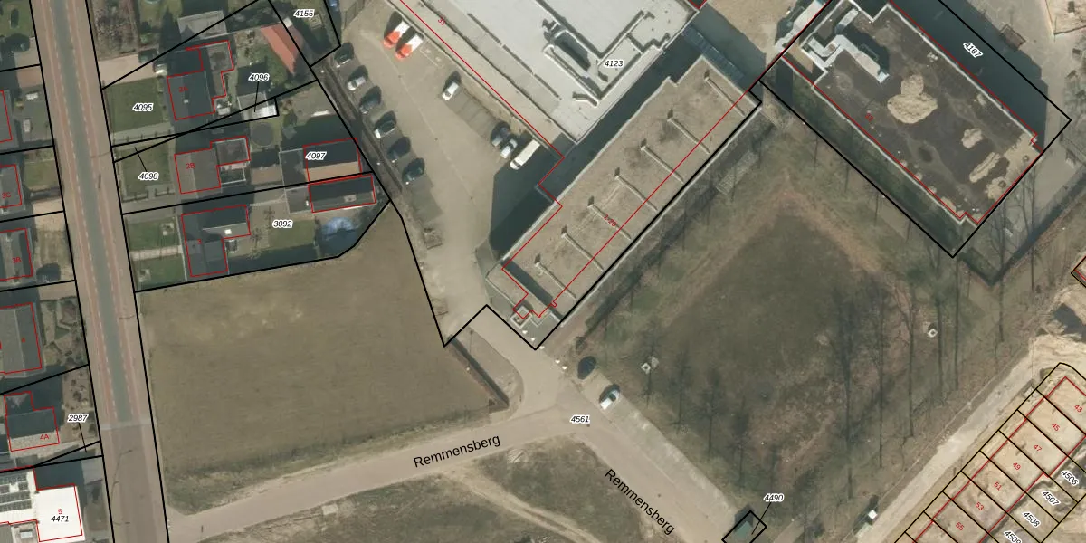 Remmensberg 1 is gelegen op kadastraal perceel OLO00B4123. Deze kadastrale aanduiding is uniek en wordt gebruikt door het Kadaster om eigendomsrechten en andere zakelijke rechten vast te leggen. Het perceel maakt onderdeel uit van de kadastrale gemeente Oploo.