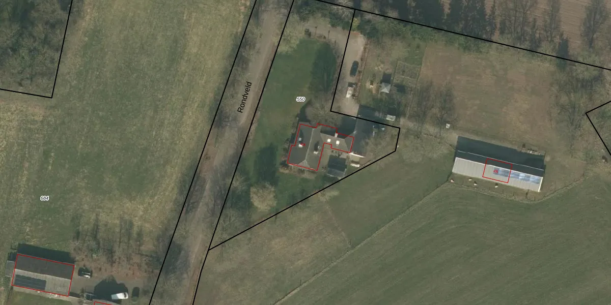 Rondveld 4-A is gelegen op kadastraal perceel OLO00M550. Deze kadastrale aanduiding is uniek en wordt gebruikt door het Kadaster om eigendomsrechten en andere zakelijke rechten vast te leggen. Het perceel maakt onderdeel uit van de kadastrale gemeente Oploo.