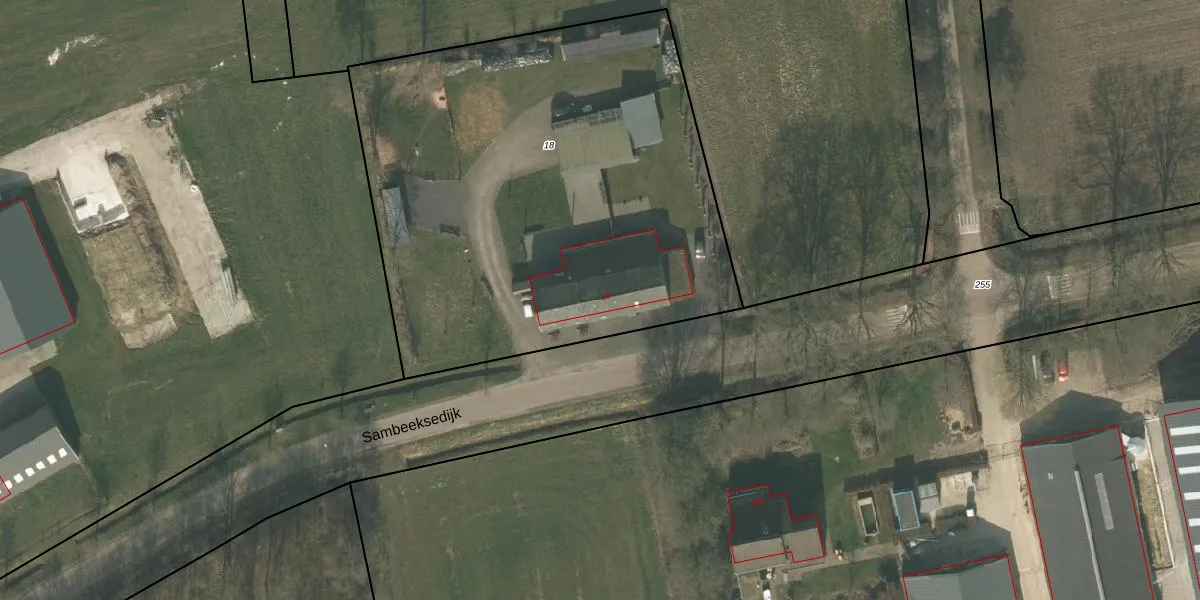 Sambeeksedijk 10 is gelegen op kadastraal perceel OLO00L18. Deze kadastrale aanduiding is uniek en wordt gebruikt door het Kadaster om eigendomsrechten en andere zakelijke rechten vast te leggen. Het perceel maakt onderdeel uit van de kadastrale gemeente Oploo.