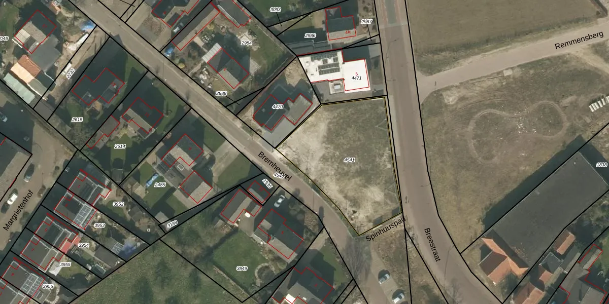 Spinhuuspad 12 is gelegen op kadastraal perceel OLO00B4541. Deze kadastrale aanduiding is uniek en wordt gebruikt door het Kadaster om eigendomsrechten en andere zakelijke rechten vast te leggen. Het perceel maakt onderdeel uit van de kadastrale gemeente Oploo.