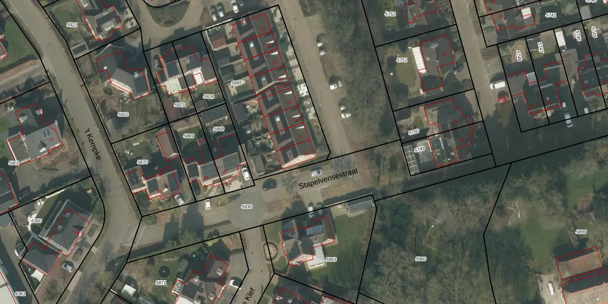 Stapelvensestraat 24 is gelegen op kadastraal perceel OLO00C5885. Deze kadastrale aanduiding is uniek en wordt gebruikt door het Kadaster om eigendomsrechten en andere zakelijke rechten vast te leggen. Het perceel maakt onderdeel uit van de kadastrale gemeente Oploo.