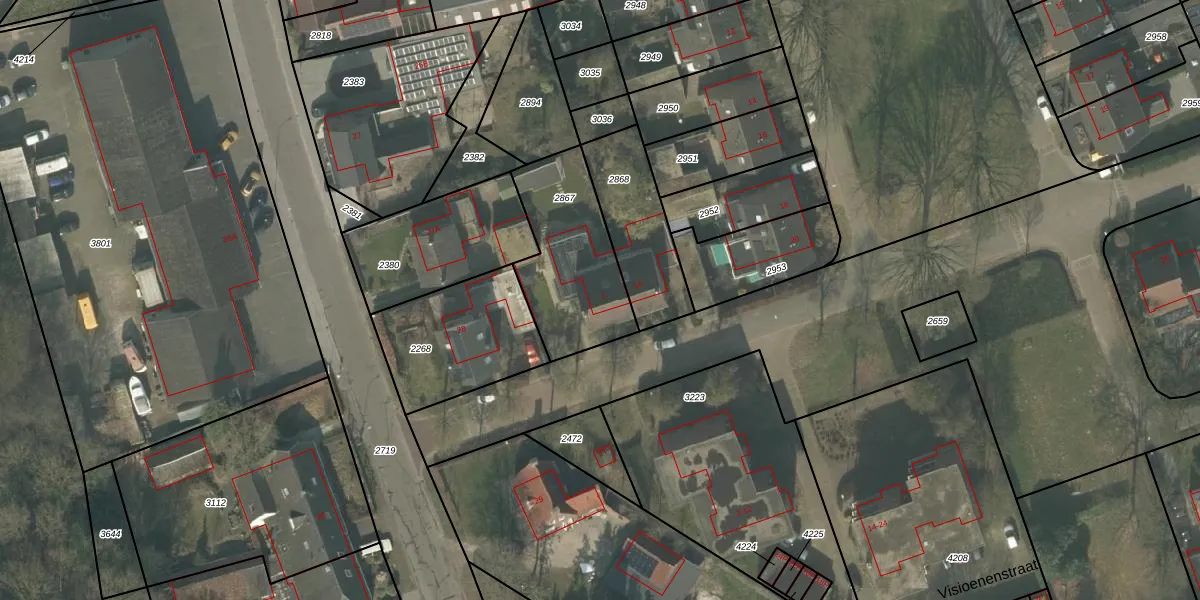 Visioenenstraat 1 is gelegen op kadastraal perceel OLO00B2867. Deze kadastrale aanduiding is uniek en wordt gebruikt door het Kadaster om eigendomsrechten en andere zakelijke rechten vast te leggen. Het perceel maakt onderdeel uit van de kadastrale gemeente Oploo.