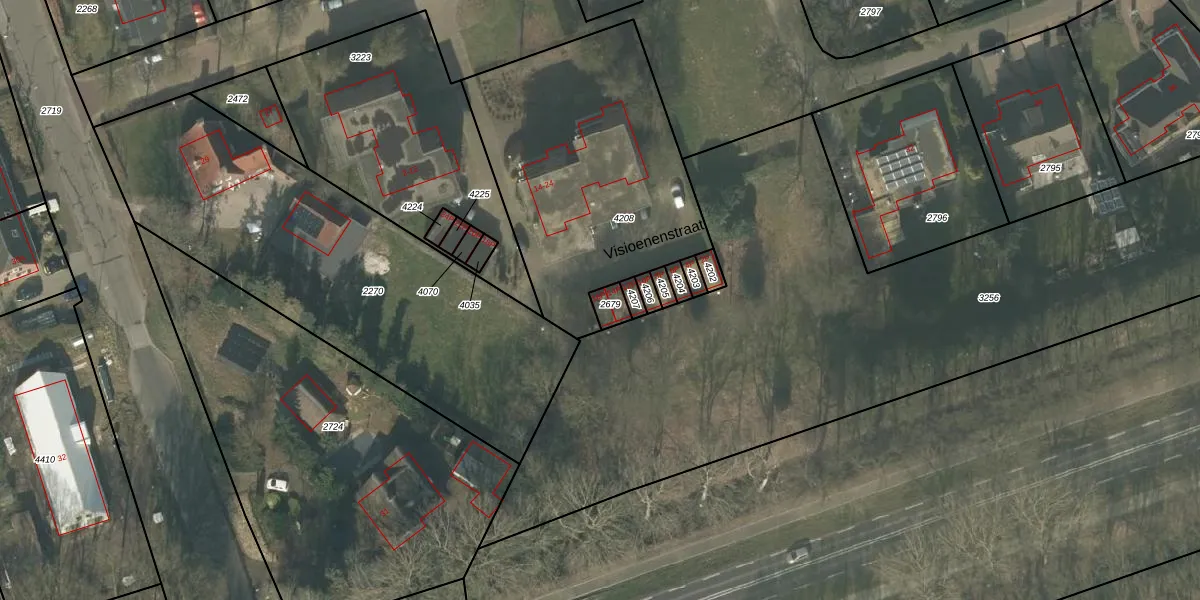 Visioenenstraat 16-P is gelegen op kadastraal perceel OLO00B2679. Deze kadastrale aanduiding is uniek en wordt gebruikt door het Kadaster om eigendomsrechten en andere zakelijke rechten vast te leggen. Het perceel maakt onderdeel uit van de kadastrale gemeente Oploo.