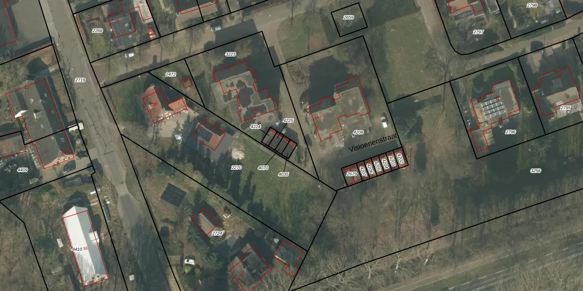 Visioenenstraat 18-P is gelegen op kadastraal perceel OLO00B4035. Deze kadastrale aanduiding is uniek en wordt gebruikt door het Kadaster om eigendomsrechten en andere zakelijke rechten vast te leggen. Het perceel maakt onderdeel uit van de kadastrale gemeente Oploo.