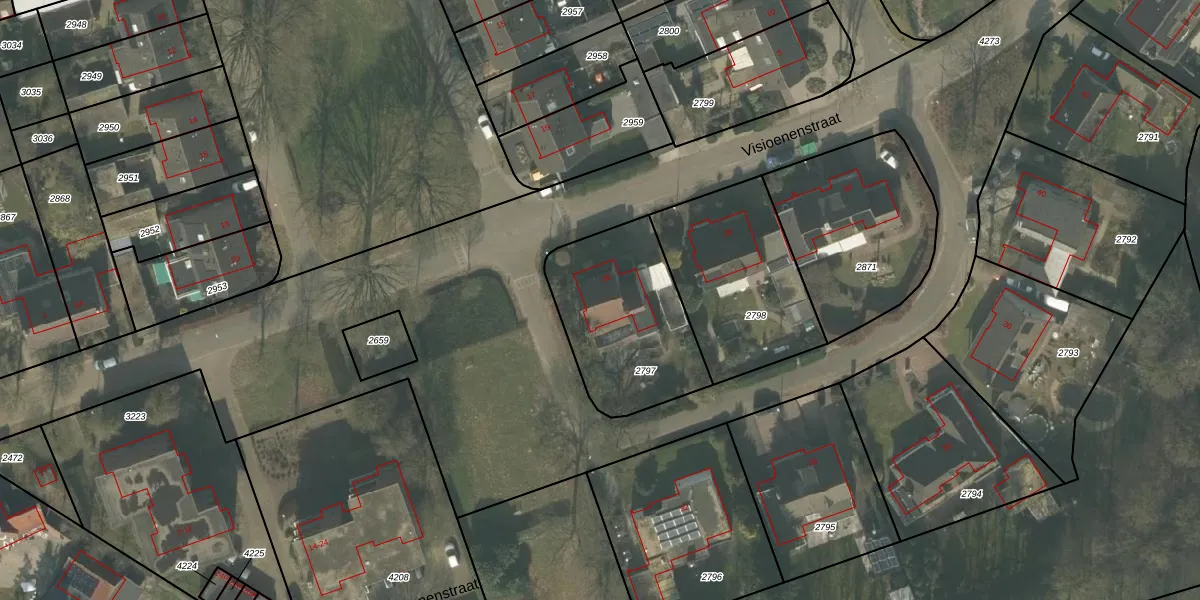 Visioenenstraat 26 is gelegen op kadastraal perceel OLO00B2797. Deze kadastrale aanduiding is uniek en wordt gebruikt door het Kadaster om eigendomsrechten en andere zakelijke rechten vast te leggen. Het perceel maakt onderdeel uit van de kadastrale gemeente Oploo.