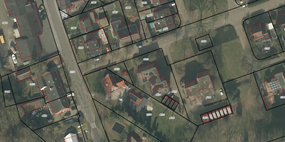 Visioenenstraat 6 is gelegen op kadastraal perceel OLO00B3223. Deze kadastrale aanduiding is uniek en wordt gebruikt door het Kadaster om eigendomsrechten en andere zakelijke rechten vast te leggen. Het perceel maakt onderdeel uit van de kadastrale gemeente Oploo.