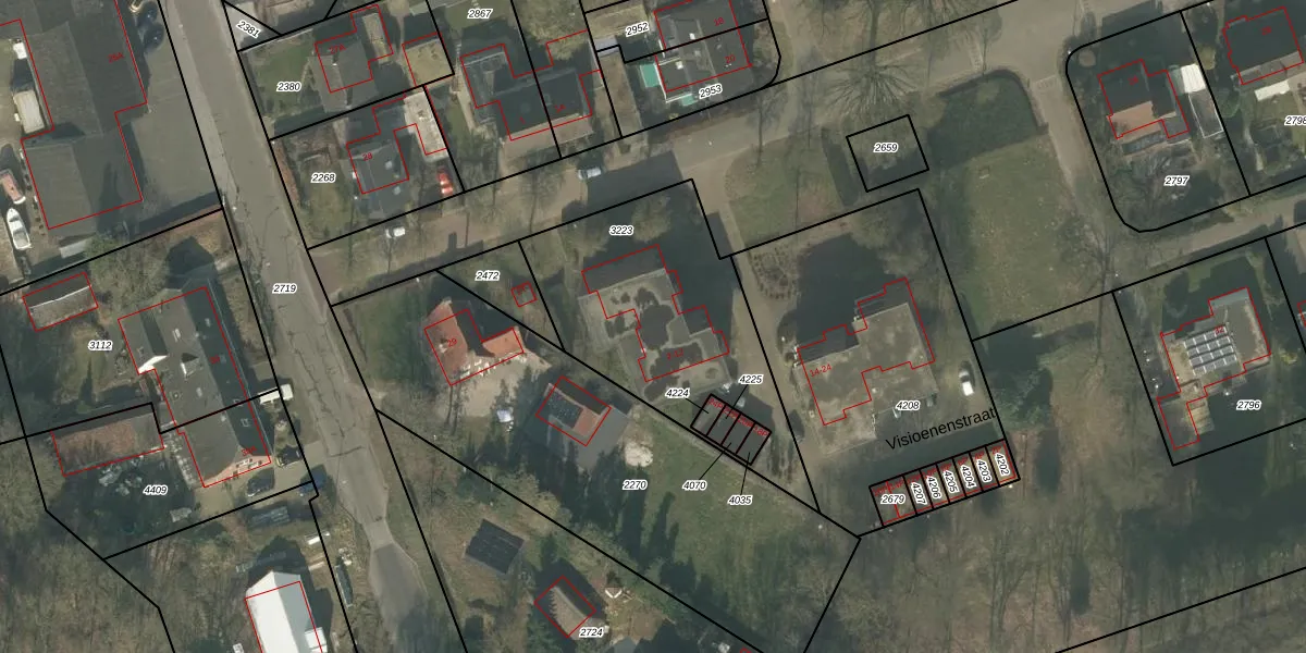 Visioenenstraat 8 is gelegen op kadastraal perceel OLO00B3223. Deze kadastrale aanduiding is uniek en wordt gebruikt door het Kadaster om eigendomsrechten en andere zakelijke rechten vast te leggen. Het perceel maakt onderdeel uit van de kadastrale gemeente Oploo.