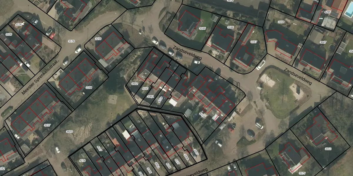 Zandseveldweg 12 is gelegen op kadastraal perceel OLO00B4219. Deze kadastrale aanduiding is uniek en wordt gebruikt door het Kadaster om eigendomsrechten en andere zakelijke rechten vast te leggen. Het perceel maakt onderdeel uit van de kadastrale gemeente Oploo.