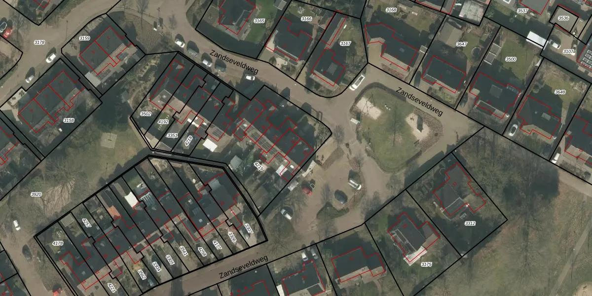 Het perceel waarop Zandseveldweg 22 staat heeft een oppervlakte van 1069 m². Dit is een zeer groot perceel. De perceeloppervlakte wordt geregistreerd door het Kadaster. Gedetailleerde informatie over de maten van dit perceel kunt u vinden in het rapport Kadastrale kaart met maatvoering van Zandseveldweg 22.