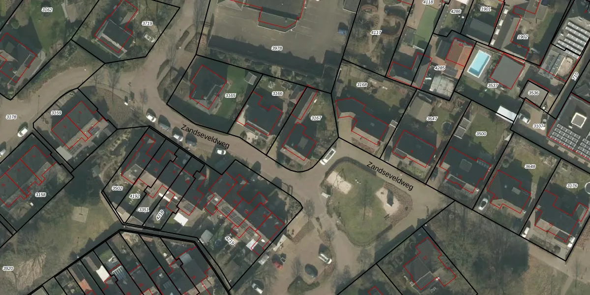 Zandseveldweg 5 is gelegen op kadastraal perceel OLO00B3167. Deze kadastrale aanduiding is uniek en wordt gebruikt door het Kadaster om eigendomsrechten en andere zakelijke rechten vast te leggen. Het perceel maakt onderdeel uit van de kadastrale gemeente Oploo.