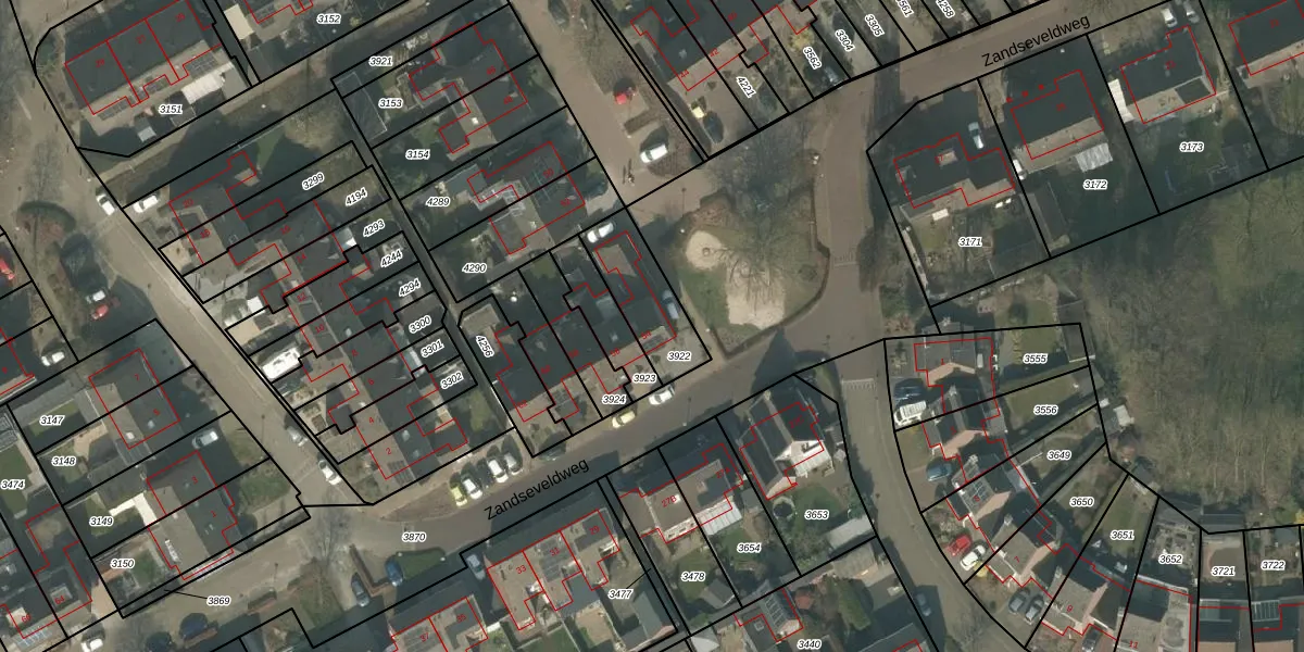 Zandseveldweg 54 is gelegen op kadastraal perceel OLO00B3922. Deze kadastrale aanduiding is uniek en wordt gebruikt door het Kadaster om eigendomsrechten en andere zakelijke rechten vast te leggen. Het perceel maakt onderdeel uit van de kadastrale gemeente Oploo.