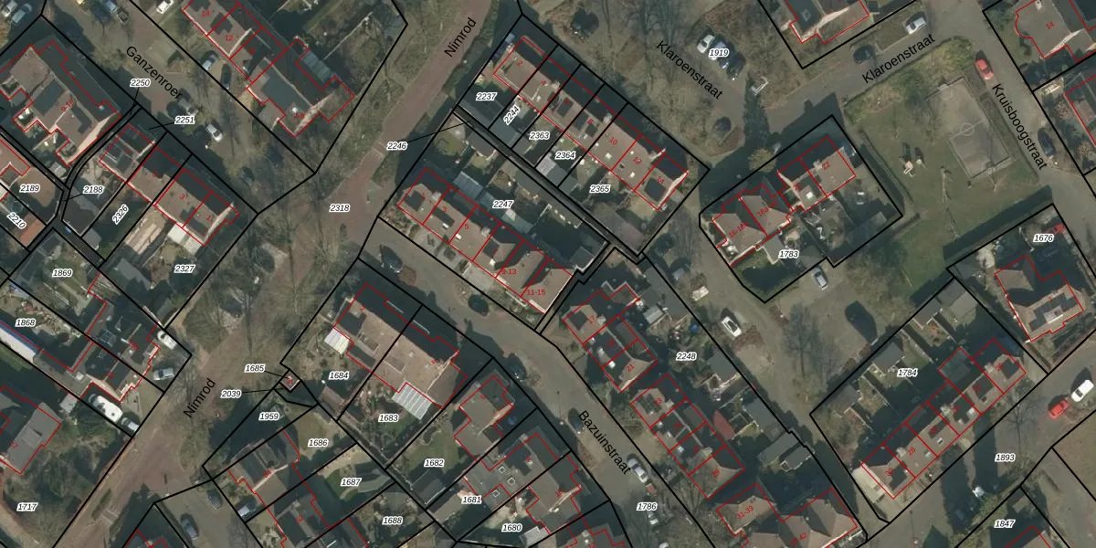 Bazuinstraat 15 is gelegen op kadastraal perceel MIL00C2247. Deze kadastrale aanduiding is uniek en wordt gebruikt door het Kadaster om eigendomsrechten en andere zakelijke rechten vast te leggen. Het perceel maakt onderdeel uit van de kadastrale gemeente Mill.