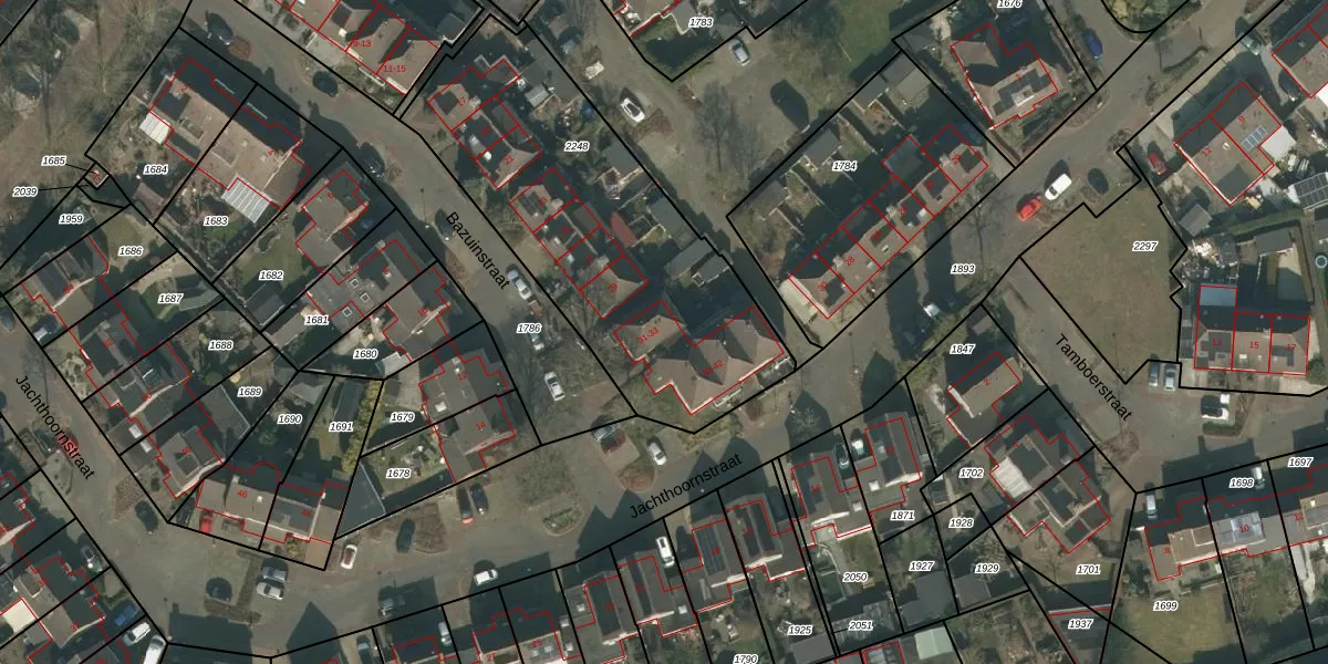 Het perceel waarop Bazuinstraat 33 staat heeft een oppervlakte van 1615 m². Dit is een zeer groot perceel. De perceeloppervlakte wordt geregistreerd door het Kadaster. Gedetailleerde informatie over de maten van dit perceel kunt u vinden in het rapport Kadastrale kaart met maatvoering van Bazuinstraat 33.