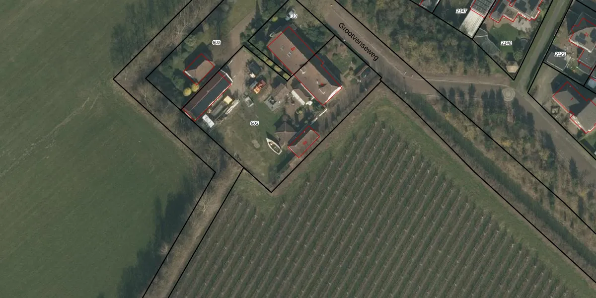 Grootvenseweg 8-b is gelegen op kadastraal perceel MIL00R903. Deze kadastrale aanduiding is uniek en wordt gebruikt door het Kadaster om eigendomsrechten en andere zakelijke rechten vast te leggen. Het perceel maakt onderdeel uit van de kadastrale gemeente Mill.