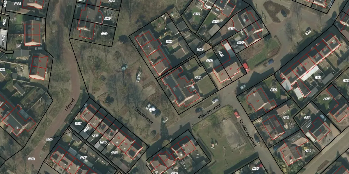 Klaroenstraat 13 is gelegen op kadastraal perceel MIL00C2301. Deze kadastrale aanduiding is uniek en wordt gebruikt door het Kadaster om eigendomsrechten en andere zakelijke rechten vast te leggen. Het perceel maakt onderdeel uit van de kadastrale gemeente Mill.