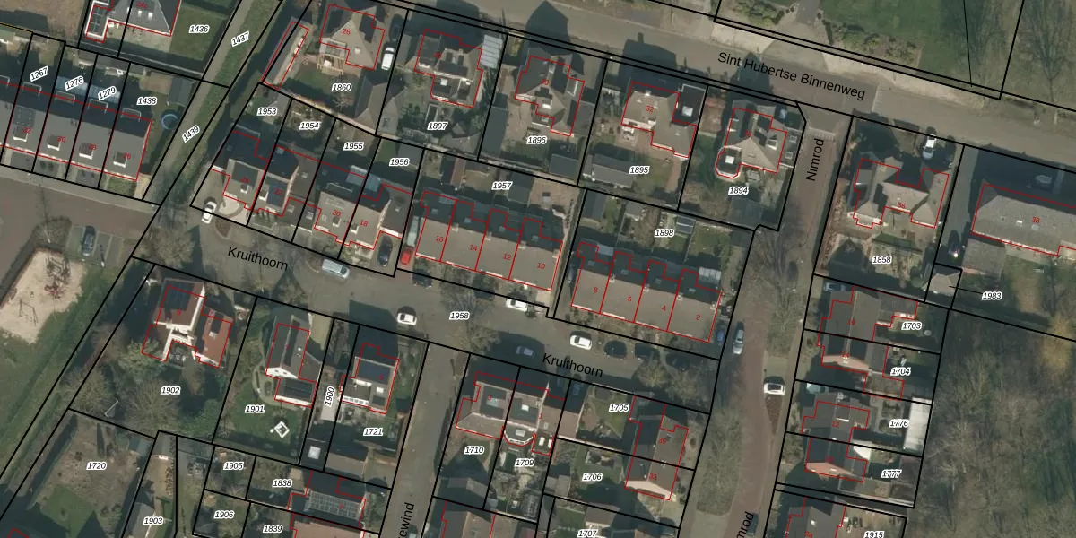 Het perceel waarop Kruithoorn 10 staat heeft een oppervlakte van 710 m². Dit is een groot perceel. De perceeloppervlakte wordt geregistreerd door het Kadaster. Gedetailleerde informatie over de maten van dit perceel kunt u vinden in het rapport Kadastrale kaart met maatvoering van Kruithoorn 10.