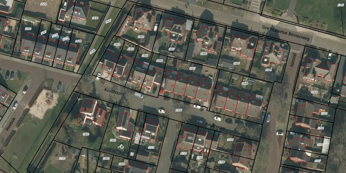 Het perceel waarop Kruithoorn 16 staat heeft een oppervlakte van 710 m². Dit is een groot perceel. De perceeloppervlakte wordt geregistreerd door het Kadaster. Gedetailleerde informatie over de maten van dit perceel kunt u vinden in het rapport Kadastrale kaart met maatvoering van Kruithoorn 16.