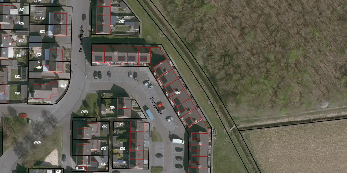 Het perceel waarop Burggraaf 15-A staat heeft een oppervlakte van 1495 m². Dit is een zeer groot perceel. De perceeloppervlakte wordt geregistreerd door het Kadaster. Gedetailleerde informatie over de maten van dit perceel kunt u vinden in het rapport Kadastrale kaart met maatvoering van Burggraaf 15-A.