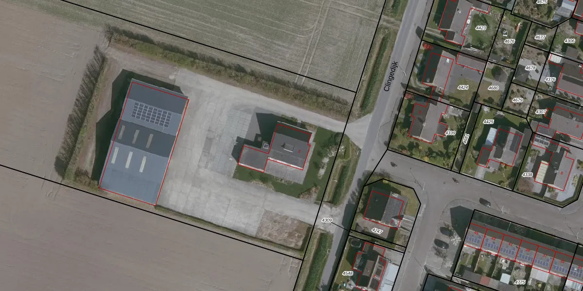 Het perceel waarop Clingedijk 2 staat heeft een oppervlakte van 2,9 ha. Dit is een zeer groot perceel. De perceeloppervlakte wordt geregistreerd door het Kadaster. Gedetailleerde informatie over de maten van dit perceel kunt u vinden in het rapport Kadastrale kaart met maatvoering van Clingedijk 2.