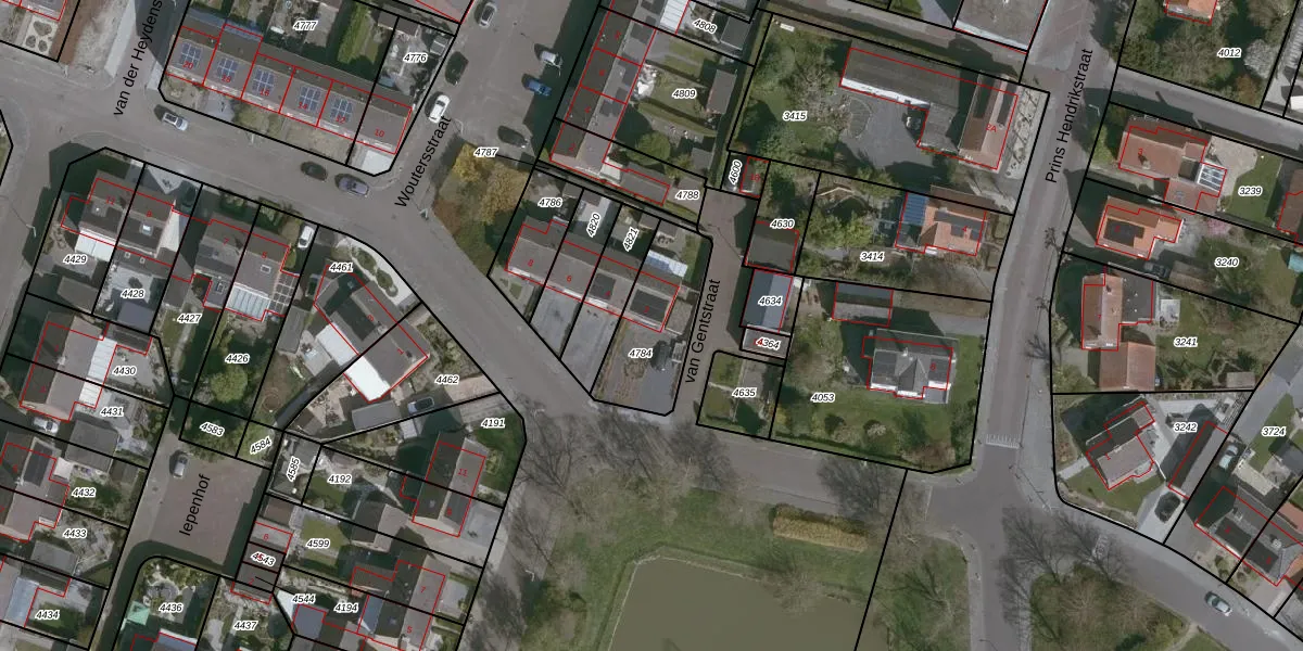 Gebruik de zoekbalk of klik op een perceel voor informatie over de adressen binnen dit perceel.