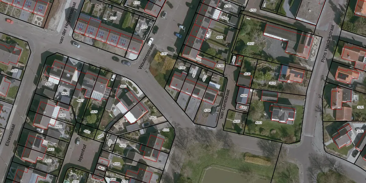 Gebruik de zoekbalk of klik op een perceel voor informatie over de adressen binnen dit perceel.
