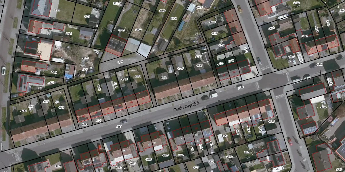 Het perceel waarop Oude Drydijck 32 staat heeft een oppervlakte van 383 m². Dit is een groot perceel. De perceeloppervlakte wordt geregistreerd door het Kadaster. Gedetailleerde informatie over de maten van dit perceel kunt u vinden in het rapport Kadastrale kaart met maatvoering van Oude Drydijck 32.