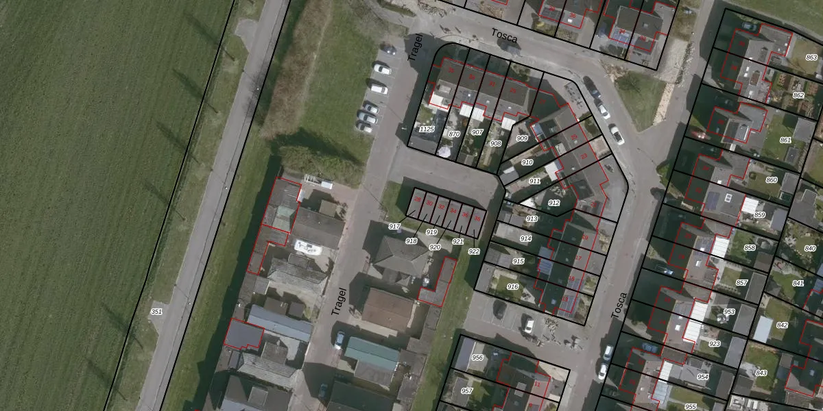 Het perceel waarop Tragel 28 staat heeft een oppervlakte van 22 m². Dit is een klein perceel. De perceeloppervlakte wordt geregistreerd door het Kadaster. Gedetailleerde informatie over de maten van dit perceel kunt u vinden in het rapport Kadastrale kaart met maatvoering van Tragel 28.