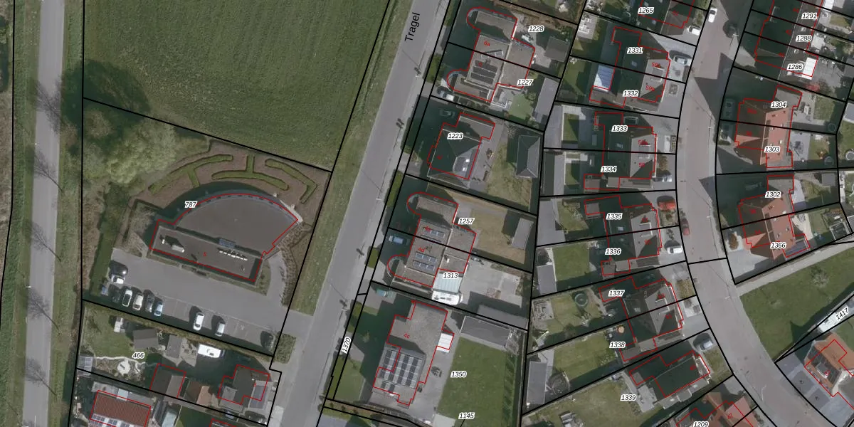 Het perceel waarop Tragel 4-e staat heeft een oppervlakte van 450 m². Dit is een groot perceel. De perceeloppervlakte wordt geregistreerd door het Kadaster. Gedetailleerde informatie over de maten van dit perceel kunt u vinden in het rapport Kadastrale kaart met maatvoering van Tragel 4-e.
