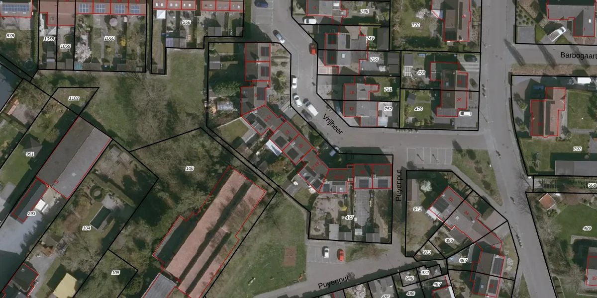 Vrijheer 15 is gelegen op kadastraal perceel HUL00L477. Deze kadastrale aanduiding is uniek en wordt gebruikt door het Kadaster om eigendomsrechten en andere zakelijke rechten vast te leggen. Het perceel maakt onderdeel uit van de kadastrale gemeente Hulst.