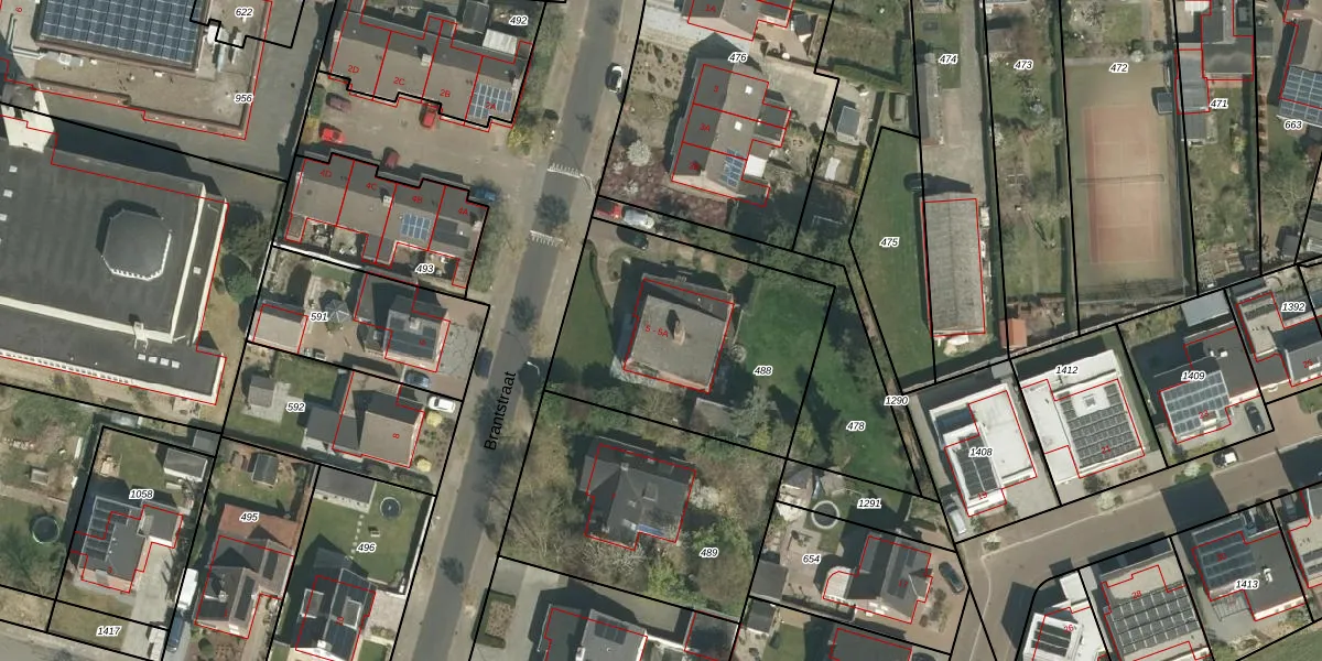 Brantstraat 5 is gelegen op kadastraal perceel ECH00AD488. Deze kadastrale aanduiding is uniek en wordt gebruikt door het Kadaster om eigendomsrechten en andere zakelijke rechten vast te leggen. Het perceel maakt onderdeel uit van de kadastrale gemeente Echt.