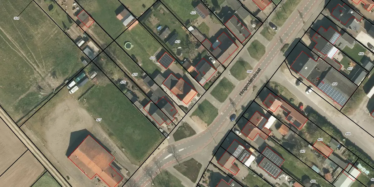 Hingenderstraat 5 is gelegen op kadastraal perceel ECH00S424. Deze kadastrale aanduiding is uniek en wordt gebruikt door het Kadaster om eigendomsrechten en andere zakelijke rechten vast te leggen. Het perceel maakt onderdeel uit van de kadastrale gemeente Echt.