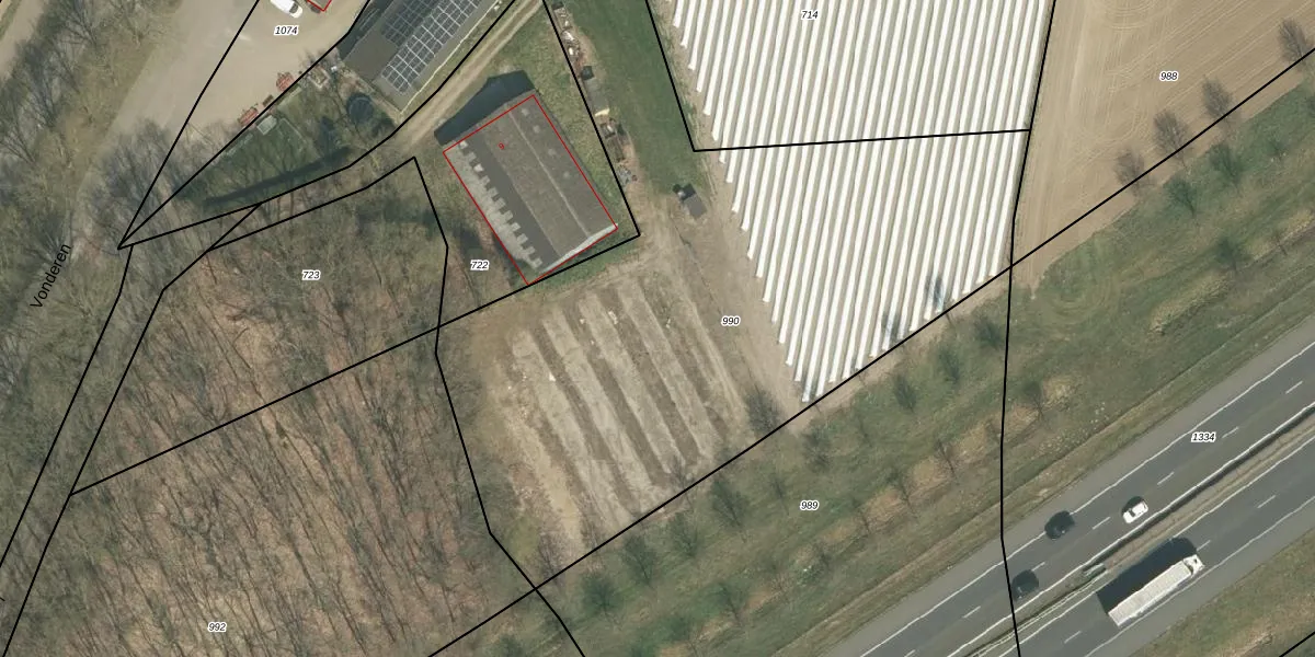 Het perceel waarop Vonderen 9-A staat heeft een oppervlakte van 3858 m². Dit is een zeer groot perceel. De perceeloppervlakte wordt geregistreerd door het Kadaster. Gedetailleerde informatie over de maten van dit perceel kunt u vinden in het rapport Kadastrale kaart met maatvoering van Vonderen 9-A.