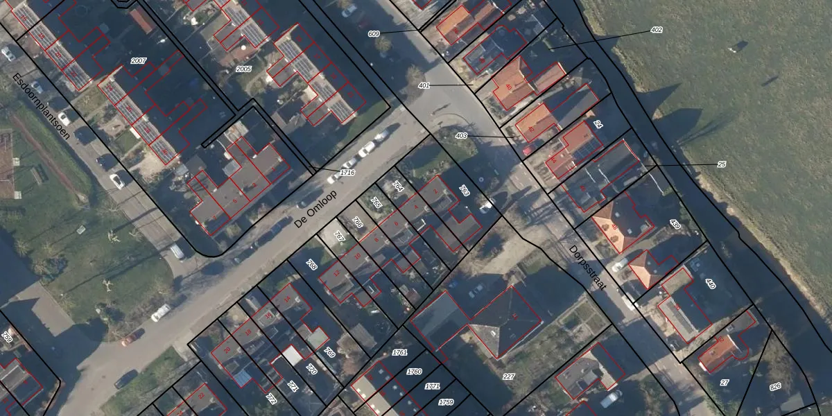 Gebruik de zoekbalk of klik op een perceel voor informatie over de adressen binnen dit perceel.