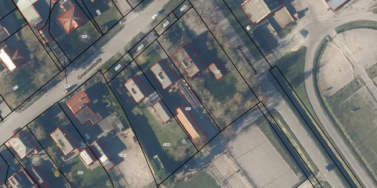 Het perceel waarop Groenveldsdijk 23-C staat heeft een oppervlakte van 960 m². Dit is een groot perceel. De perceeloppervlakte wordt geregistreerd door het Kadaster. Gedetailleerde informatie over de maten van dit perceel kunt u vinden in het rapport Kadastrale kaart met maatvoering van Groenveldsdijk 23-C.