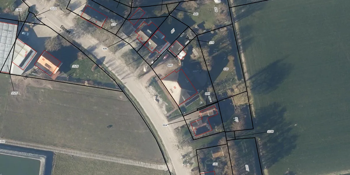 Het perceel waarop Stroet 10 staat heeft een oppervlakte van 938 m². Dit is een groot perceel. De perceeloppervlakte wordt geregistreerd door het Kadaster. Gedetailleerde informatie over de maten van dit perceel kunt u vinden in het rapport Kadastrale kaart met maatvoering van Stroet 10.