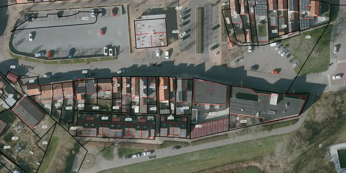 Het perceel waarop Haven 15 staat heeft een oppervlakte van 80 m². Dit is een klein perceel. De perceeloppervlakte wordt geregistreerd door het Kadaster. Gedetailleerde informatie over de maten van dit perceel kunt u vinden in het rapport Kadastrale kaart met maatvoering van Haven 15.