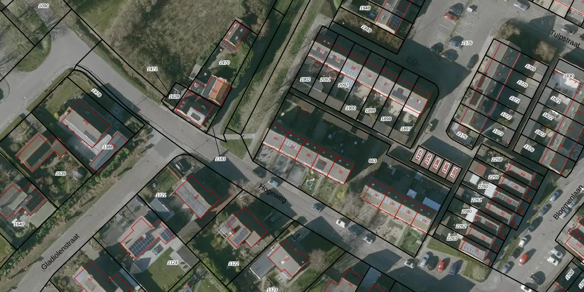 Het perceel waarop Hogeweg 38 staat heeft een oppervlakte van 1755 m². Dit is een zeer groot perceel. De perceeloppervlakte wordt geregistreerd door het Kadaster. Gedetailleerde informatie over de maten van dit perceel kunt u vinden in het rapport Kadastrale kaart met maatvoering van Hogeweg 38.