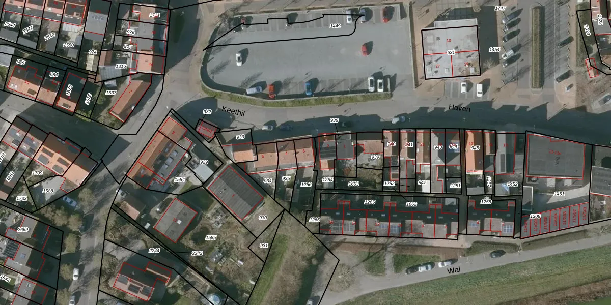 Gebruik de zoekbalk of klik op een perceel voor informatie over de adressen binnen dit perceel.