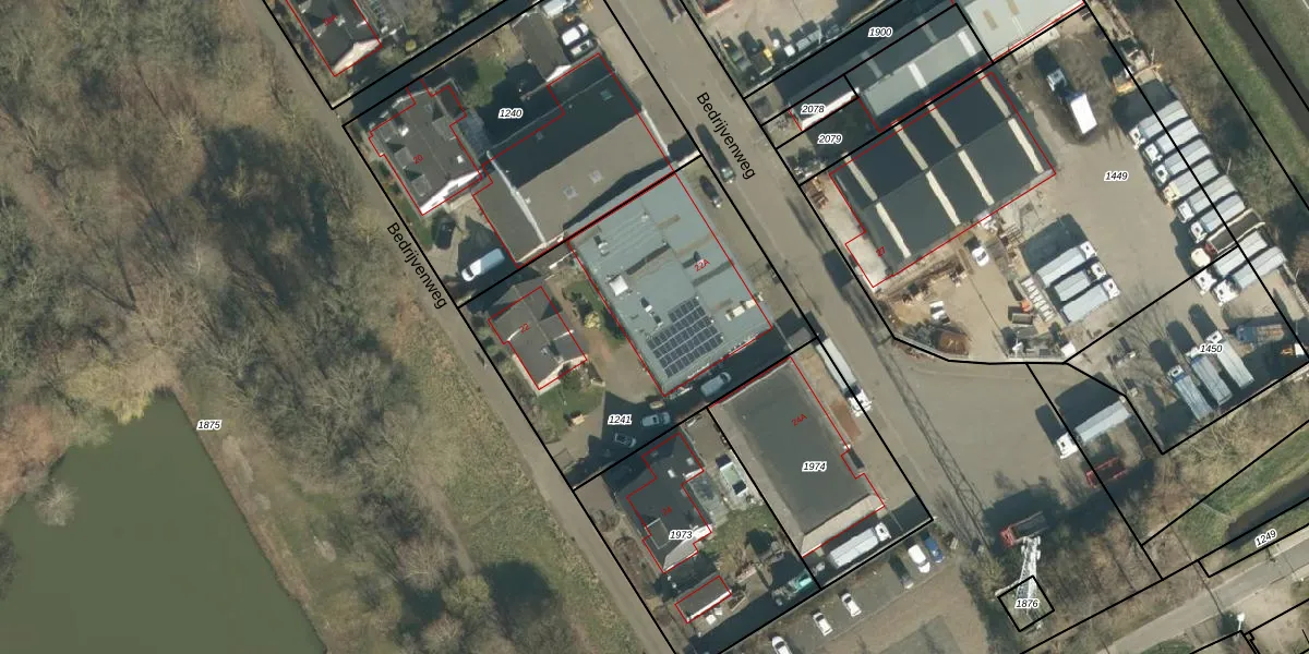 Bedrijvenweg 22-B is gelegen op kadastraal perceel MCG00G1241. Deze kadastrale aanduiding is uniek en wordt gebruikt door het Kadaster om eigendomsrechten en andere zakelijke rechten vast te leggen. Het perceel maakt onderdeel uit van de kadastrale gemeente Sint Michielsgestel.