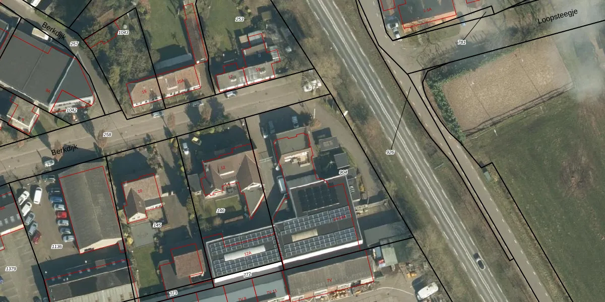 Het perceel waarop Berkdijk 14 staat heeft een oppervlakte van 1910 m². Dit is een zeer groot perceel. De perceeloppervlakte wordt geregistreerd door het Kadaster. Gedetailleerde informatie over de maten van dit perceel kunt u vinden in het rapport Kadastrale kaart met maatvoering van Berkdijk 14.