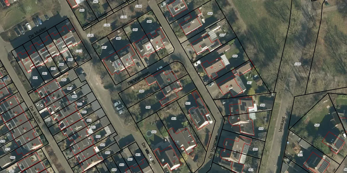 Het perceel waarop De Voerman 19 staat heeft een oppervlakte van 407 m². Dit is een groot perceel. De perceeloppervlakte wordt geregistreerd door het Kadaster. Gedetailleerde informatie over de maten van dit perceel kunt u vinden in het rapport Kadastrale kaart met maatvoering van De Voerman 19.