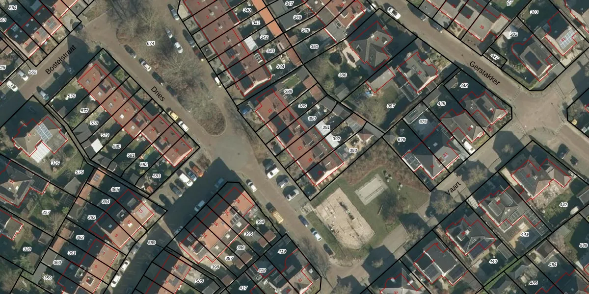 Het perceel waarop Dries 21 staat heeft een oppervlakte van 158 m². Dit is een middelgroot perceel. De perceeloppervlakte wordt geregistreerd door het Kadaster. Gedetailleerde informatie over de maten van dit perceel kunt u vinden in het rapport Kadastrale kaart met maatvoering van Dries 21.