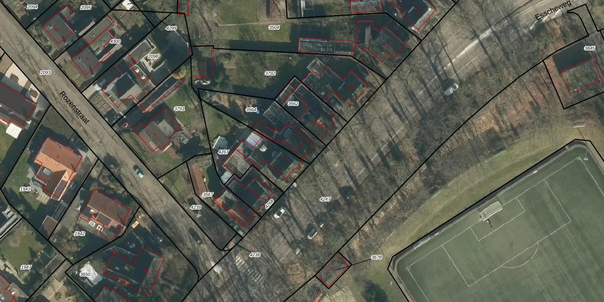 Het perceel waarop Esscheweg 40 staat heeft een oppervlakte van 393 m². Dit is een groot perceel. De perceeloppervlakte wordt geregistreerd door het Kadaster. Gedetailleerde informatie over de maten van dit perceel kunt u vinden in het rapport Kadastrale kaart met maatvoering van Esscheweg 40.