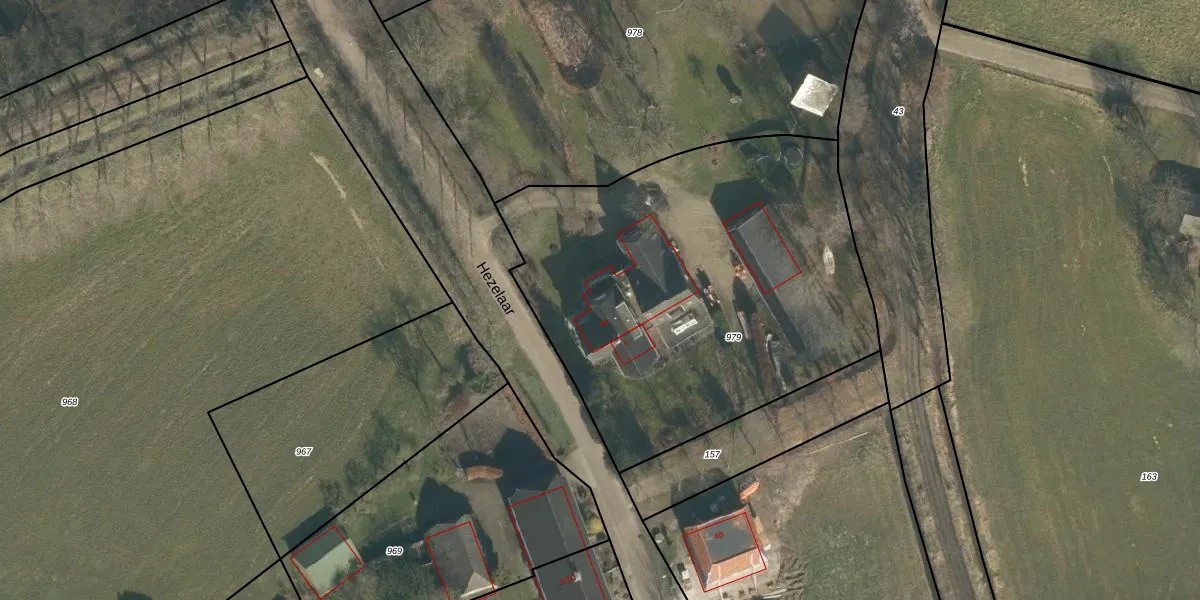 Het perceel waarop Hezelaar 4-A staat heeft een oppervlakte van 2345 m². Dit is een zeer groot perceel. De perceeloppervlakte wordt geregistreerd door het Kadaster. Gedetailleerde informatie over de maten van dit perceel kunt u vinden in het rapport Kadastrale kaart met maatvoering van Hezelaar 4-A.