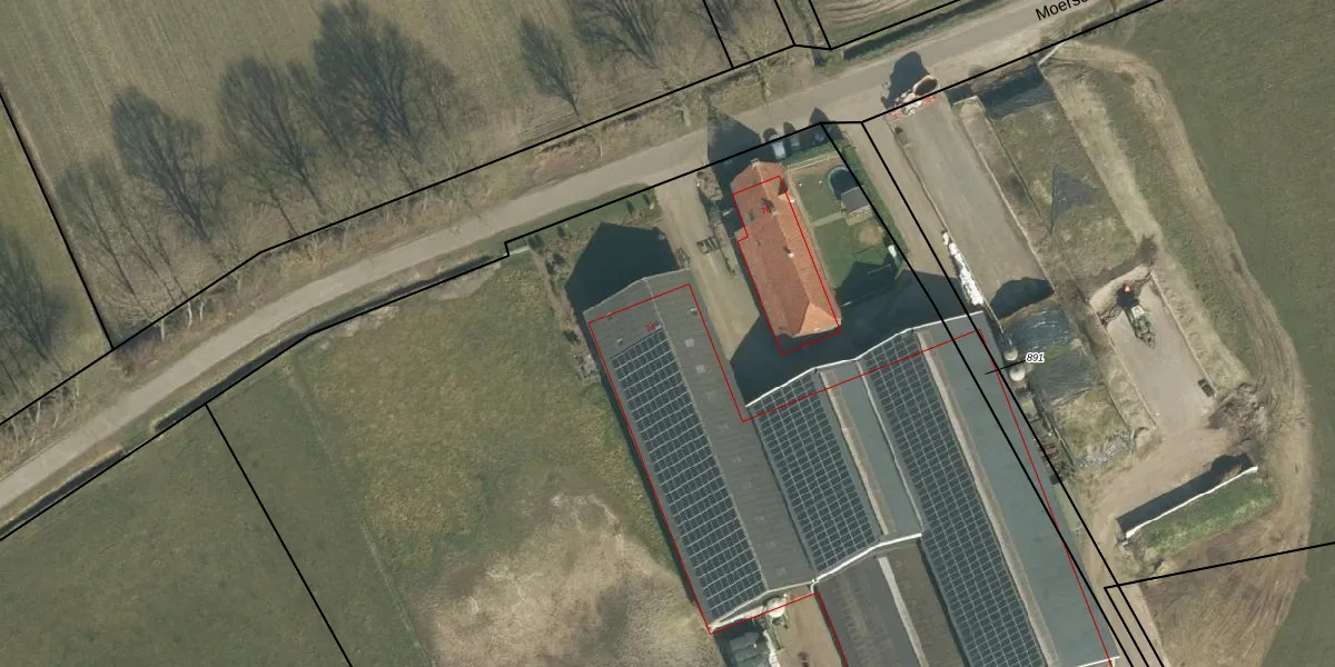 Het perceel waarop Moerschot 74 staat heeft een oppervlakte van 2,7 ha. Dit is een zeer groot perceel. De perceeloppervlakte wordt geregistreerd door het Kadaster. Gedetailleerde informatie over de maten van dit perceel kunt u vinden in het rapport Kadastrale kaart met maatvoering van Moerschot 74.