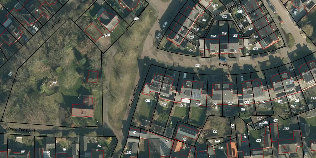 Het perceel waarop Roerkuip 2 staat heeft een oppervlakte van 475 m². Dit is een groot perceel. De perceeloppervlakte wordt geregistreerd door het Kadaster. Gedetailleerde informatie over de maten van dit perceel kunt u vinden in het rapport Kadastrale kaart met maatvoering van Roerkuip 2.