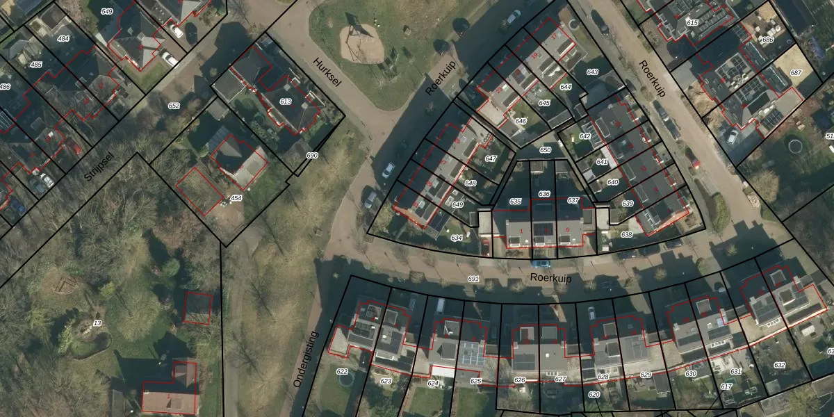 Het perceel waarop Roerkuip 31 staat heeft een oppervlakte van 303 m². Dit is een groot perceel. De perceeloppervlakte wordt geregistreerd door het Kadaster. Gedetailleerde informatie over de maten van dit perceel kunt u vinden in het rapport Kadastrale kaart met maatvoering van Roerkuip 31.