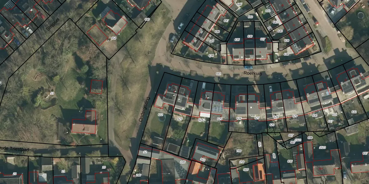 Het perceel waarop Roerkuip 4 staat heeft een oppervlakte van 395 m². Dit is een groot perceel. De perceeloppervlakte wordt geregistreerd door het Kadaster. Gedetailleerde informatie over de maten van dit perceel kunt u vinden in het rapport Kadastrale kaart met maatvoering van Roerkuip 4.