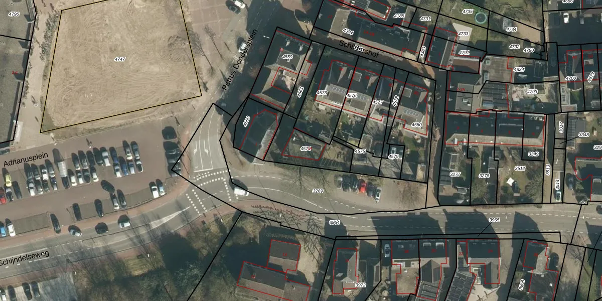 Het perceel waarop Schijndelseweg 1-A staat heeft een oppervlakte van 303 m². Dit is een groot perceel. De perceeloppervlakte wordt geregistreerd door het Kadaster. Gedetailleerde informatie over de maten van dit perceel kunt u vinden in het rapport Kadastrale kaart met maatvoering van Schijndelseweg 1-A.